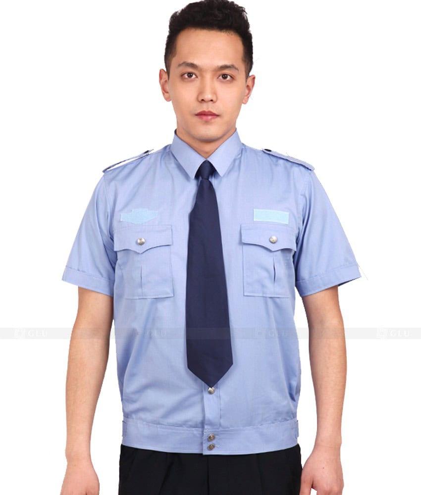 Áo đồng phục bảo vệ BV03 được may từ vải kate cao cấp, thiết kế sơ mi tay ngắn form đứng với túi hộp, cầu vai và cà vạt đi kèm. Gam xanh dương nhạt phối navy mang lại hình ảnh chuyên nghiệp, gọn gàng và thân thiện cho nhân viên bảo vệ.