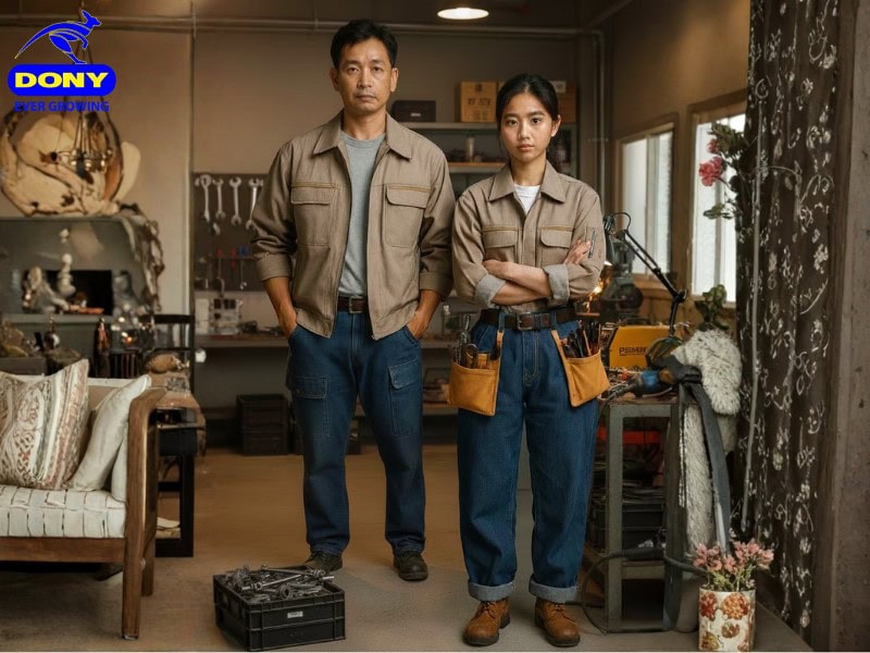 DONY phát triển mẫu áo khoác bảo hộ 07 dành riêng cho đội ngũ kỹ thuật viên, thợ cơ khí, thợ sửa chữa, công nhân xưởng và những vị trí phải vận động liên tục. Thiết kế tập trung vào 3 yếu tố chính: độ bền – độ thoáng – độ tiện dụng, đảm bảo phù hợp với dáng người Việt và các điều kiện làm việc cường độ cao.