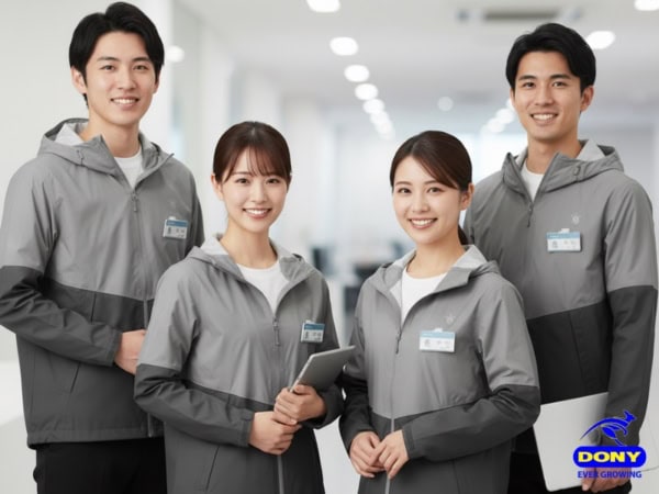 DONY chuyên thiết kế – sản xuất áo khoác gió đồng phục chất lượng cao, giao hàng toàn quốc. Với dây chuyền may hiện đại, đội ngũ kỹ thuật lành nghề và quy trình kiểm tra nghiêm ngặt, DONY mang đến sản phẩm đạt chuẩn xuất khẩu, đẹp – bền – đúng hẹn. Chúng tôi cam kết:
