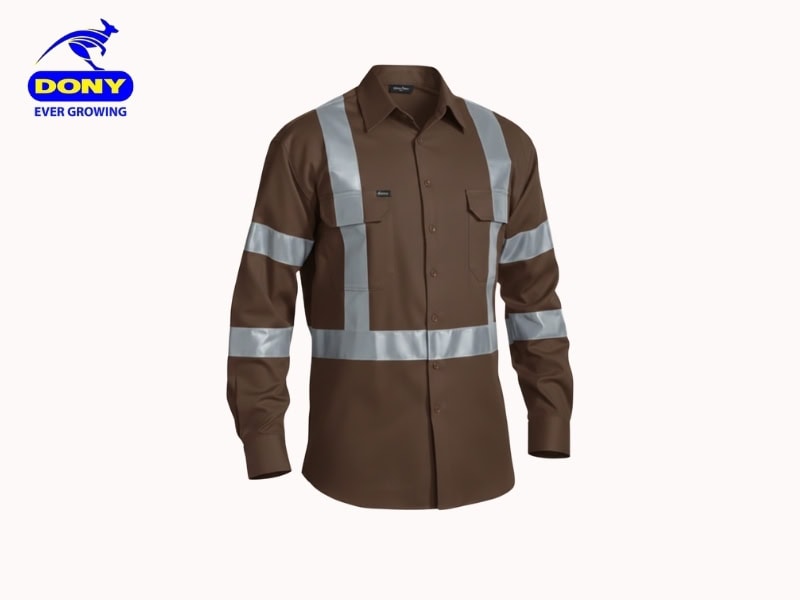 Giới thiệu thông tin áo sơ mi phản quang màu nâu phối bạc