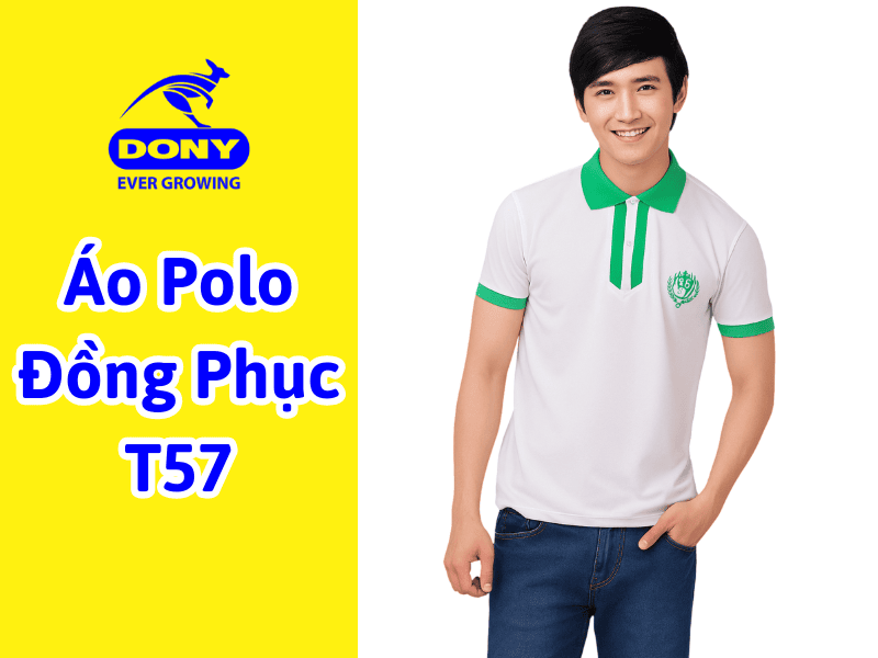 Với tông màu trắng phối xanh nổi bật, áo polo đồng phục T57 không chỉ thể hiện sự đồng nhất mà còn giúp nâng cao hình ảnh thương hiệu một cách hiệu quả.