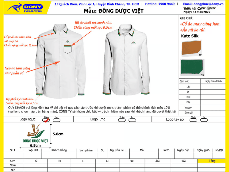 Chi phí sản xuất áo sơ mi đồng phục tại đồng phục DONY phụ thuộc vào số lượng, chất liệu và các yêu cầu kỹ thuật như in/thêu logo, phối màu… đồng phục DONY cam kết: