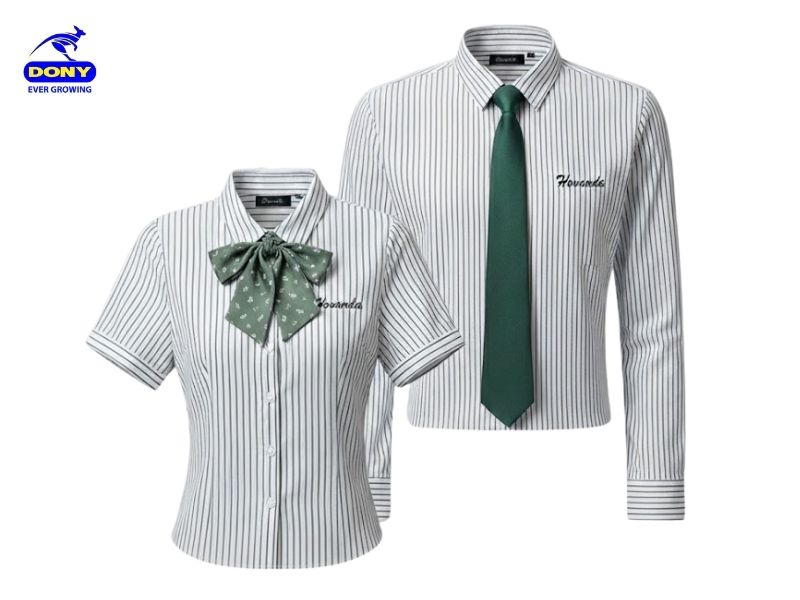 - Tay ngắn (Nữ): Tạo sự thoải mái, linh hoạt cho những nhân viên thường xuyên thao tác máy tính hoặc di chuyển trong văn phòng.
