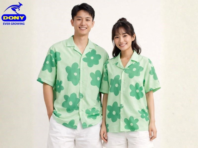 Với gam màu xanh lá tươi sáng kết hợp họa tiết hoa bản lớn nổi bật, áo sơ mi đồng phục team building 08 mang đến hình ảnh trẻ trung, tràn đầy năng lượng cho các chương trình du lịch hay hoạt động gắn kết đội nhóm.
