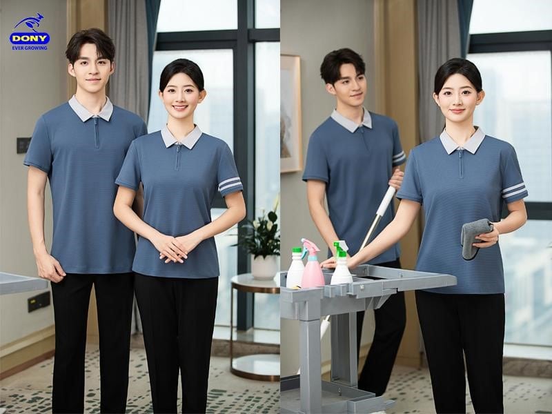 Với kinh nghiệm sản xuất đồng phục cho nhiều doanh nghiệp dịch vụ – lưu trú, DONY nhận may áo thun đồng phục khách sạn theo yêu cầu với đa dạng chất liệu, kiểu dáng và kỹ thuật in thêu logo chuyên nghiệp.