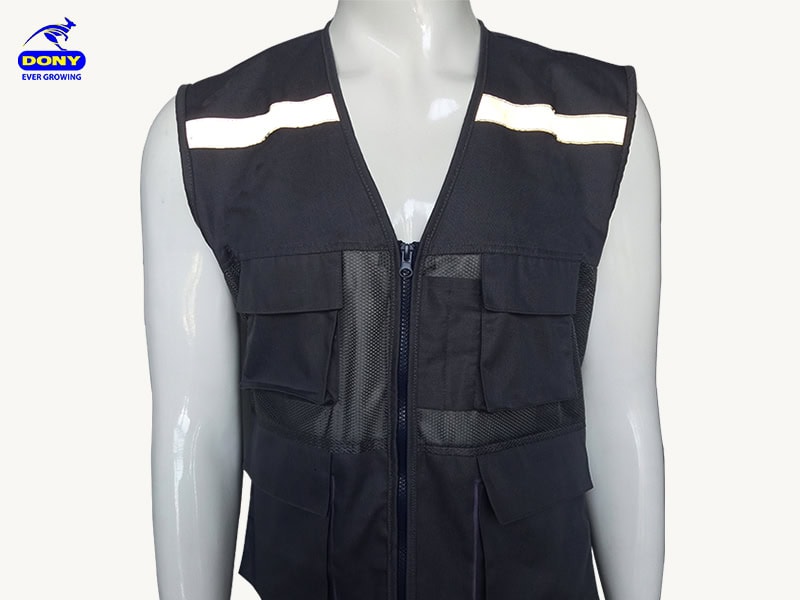 Áo dạng gile không tay, khóa kéo chắc chắn, form vừa vặn. Điểm nhấn là nhiều túi hộp kích thước lớn nhỏ khác nhau, thuận tiện cho việc đựng dụng cụ và vật dụng cần thiết. Dải phản quang ngang ngực giúp tăng khả năng nhận diện trong điều kiện thiếu sáng.