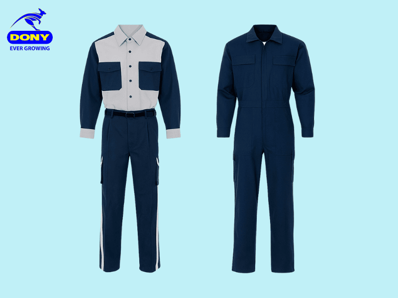 - Áo liền quần (jumpsuit): Kiểu áo liền quần mang lại sự gọn gàng, kín đáo và bảo vệ toàn diện hơn cho cơ thể. Đây là lựa chọn lý tưởng cho các ngành yêu cầu an toàn cao như cơ khí, xây dựng, điện lực.