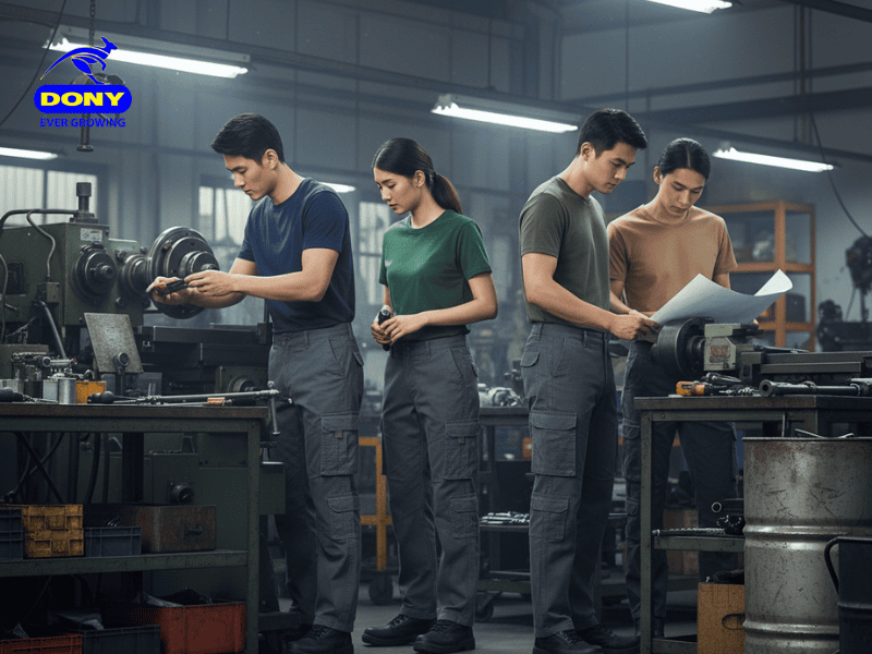 - Thiết kế linh hoạt: Thiết kế quần túi hộp (cargo) hoặc các kiểu dáng khác theo yêu cầu, đảm bảo tính tiện dụng tối đa trong môi trường làm việc.