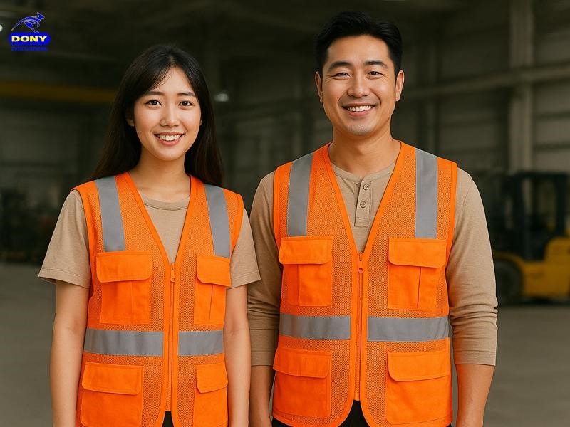 Gam cam phản quang nổi bật được áp dụng làm màu chủ đạo, không chỉ tạo cảm giác năng lượng và chuyên nghiệp mà còn dễ nhận diện từ xa. Các đường sọc phản quang xám bạc giúp tăng độ an toàn trong môi trường thiếu sáng như nhà kho, công trình hoặc hầm kỹ thuật.