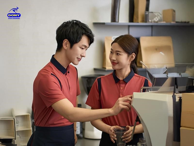 Giới thiệu thông tin đồng phục quán cafe áo polo phối màu trẻ trung hiện đại
