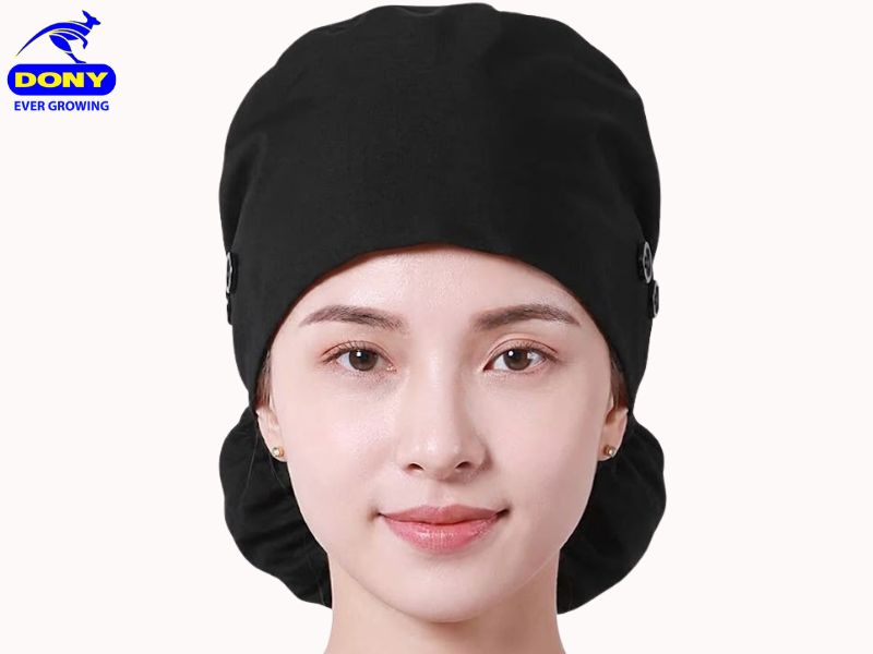 Mẫu mũ đầu bếp này được DONY phát triển nhằm đáp ứng nhu cầu về sự tiện lợi, sạch sẽ và đồng bộ trong môi trường bếp. Thiết kế mũ ôm gọn phần đầu, có túi vải phía sau giúp chứa gọn tóc dài, giữ hình ảnh gọn gàng khi làm việc.