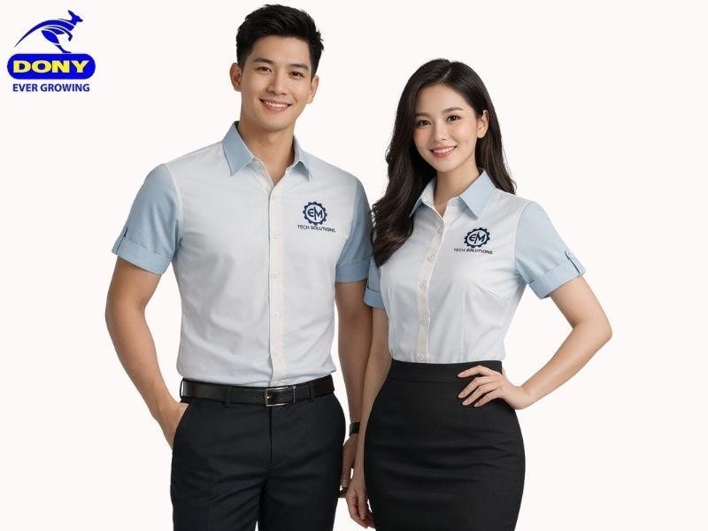Bảng size đồng phục áo sơ mi tay ngắn được thiết kế đa dạng, phù hợp nhiều vóc dáng nam và nữ trong môi trường công sở. Ngoài size tiêu chuẩn, DONY còn hỗ trợ may theo số đo riêng để đảm bảo mặc vừa vặn và thoải mái nhất.